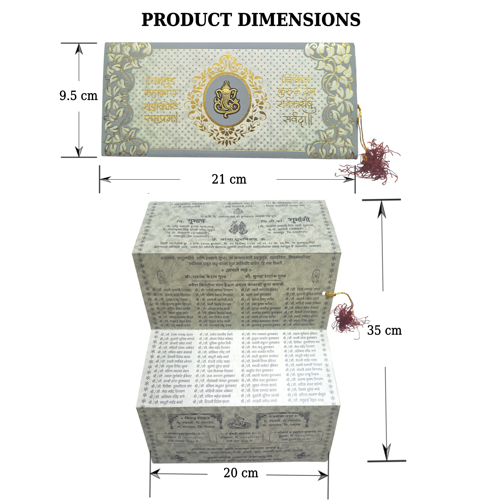 • Spacious 3-Fold Lagna Patrika in Marathi: The inner card unfolds into a 3-fold Lagna Patrika in Marathi, offering ample space for detailed wedding information, rituals, and personalized messages in your preferred language.