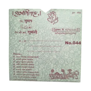 • Elegant 2 Fold Marathi Lagna Patrika – Crafted in premium green paper with medium thickness, offering ample space for wedding content printing while maintaining durability.