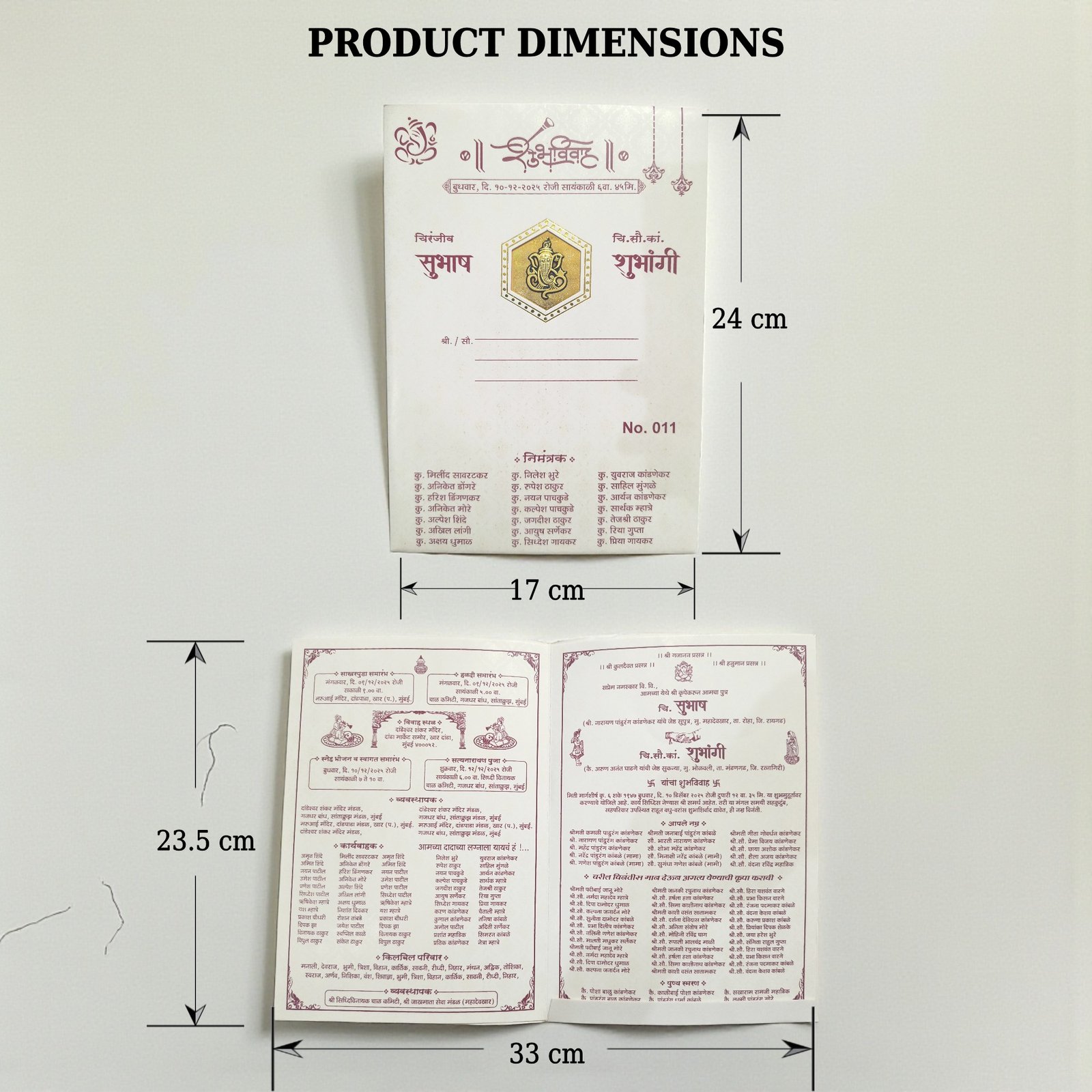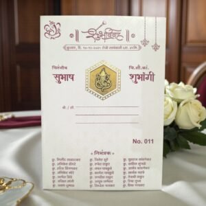 Adding a personal touch, the card features an acrylic nameplate for the wedding couple, making each invitation uniquely yours. The medium-thickness insert provides ample space for printing your wedding details in Marathi or English, ensuring clarity and elegance in presentation. Whether you’re planning a traditional ceremony or a fusion celebration, this Lagna Patrika is designed to resonate emotionally with your guests.