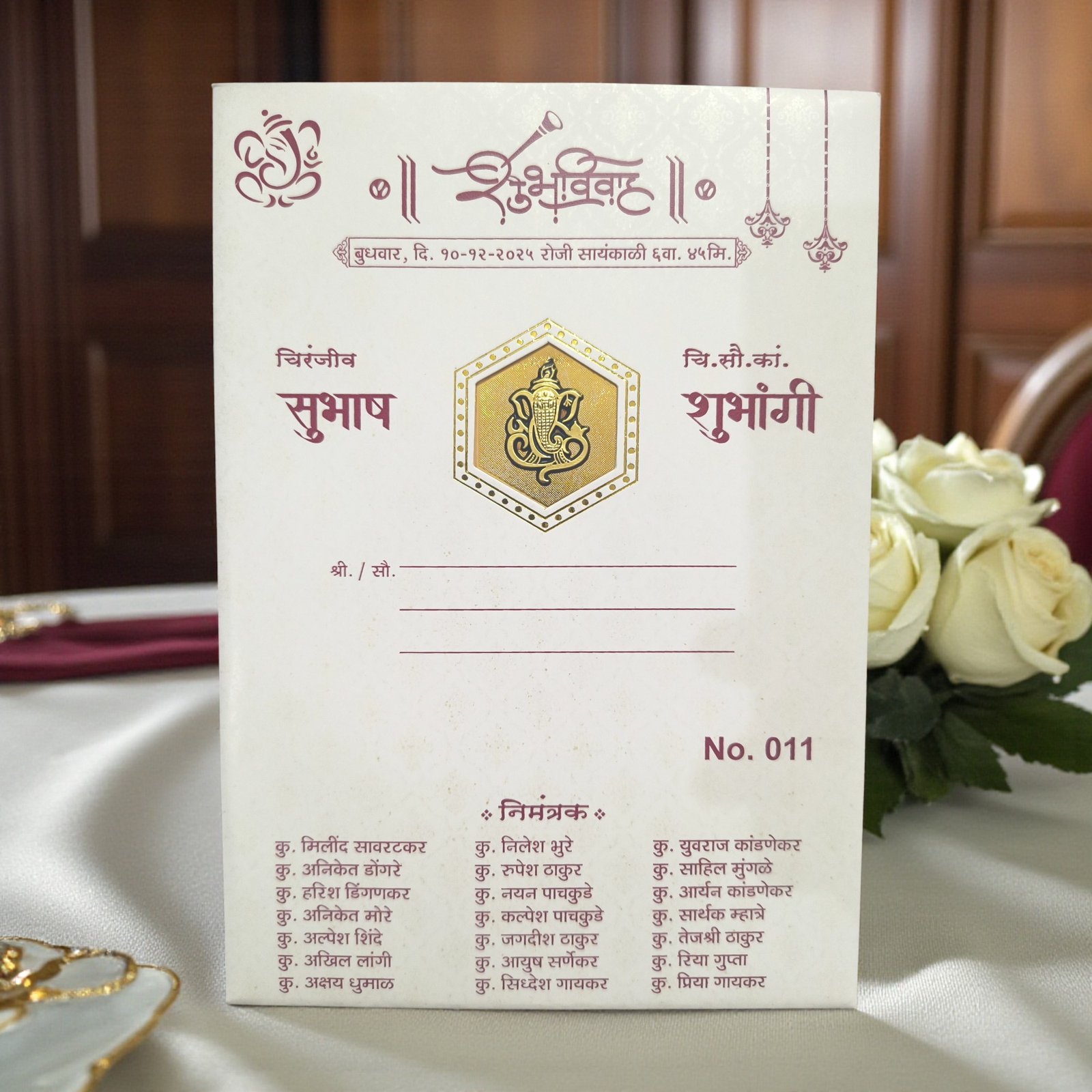 Celebrate tradition with elegance—this Marathi Lagna Patrika blends divine artistry, premium craftsmanship, and heartfelt personalization for your perfect wedding beginning.