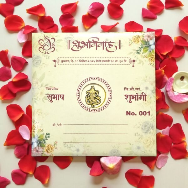 – Ideal for Hindu wedding invitations, Ganesh-themed wedding cards, and premium floral wedding cards