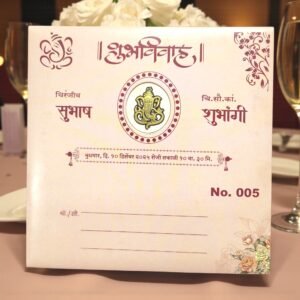 This card is perfect for couples who want to blend cultural richness with modern elegance. Whether you’re planning a traditional Maharashtrian wedding or a fusion celebration, this invitation makes a lasting impression.