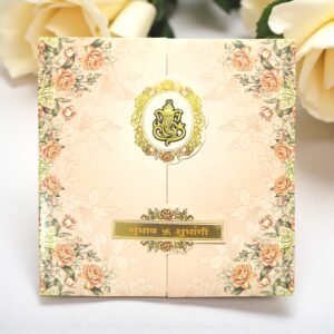 Floral Two Fold Laser Cut Marathi Wedding Invitation Card With Acrylic Lord Ganesha and Name Plate – Peach