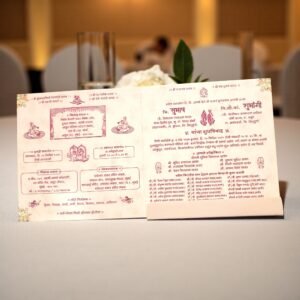 – Spacious Two-Fold Inserts: Designed for clarity and creativity, the inserts offer ample space to print your Lagna Patrika, event details, and heartfelt messages in Marathi or English.